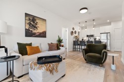 Experience luxurious living in this stunning 1 year old top-floor corner penthouse condo in "The Yearling" at the Ironhorse development. This 2-bedroom, 2-bathroom home boasts high ceilings and an expansive private covered deck with breathtaking mountain views. Modern amenities include stainless steel appliances, stylish tile and laminate flooring, quartz countertops, and an open, airy layout. Enjoy the convenience of 1 underground parking stall and a spacious storage locker. Located in the desirable Sardis area, close to shopping, schools, and parks for kids. Don't miss this incredible opportunity to own a beautiful, move-in-ready penthouse. 2 pets allowed. Dogs or Cats. No Size Restriction.