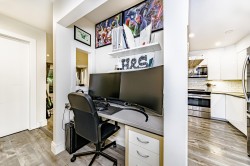RENOVATED bright suite with private patio area in fantastic location - WALK TO EVERYTHING! This 1 bedroom condo with large bedroom, renovated bathrm with heated floors & walk in shower! Large living rm with corner gas fireplace & sliders to the private patio with beautiful greenery. GORGEOUS NEW kitchen with breakfast bar, quartz counters, newer stainless steel appliances + new flooring throughout! Work from the home office nook + in suite laundry/storage area plus additional storage locker. Blocks to the Evergreen Line, Weestcoast Expresss, Coquitlam Centre Mall, Aquatic Centre, senior centre, Evergreen Cultural centre, Lafarge lake, Coquitlam river trails, all levels of schools including Douglas College!