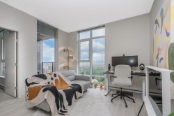 A rare opportunity to own a pristine & immaculately maintained view suite offering panoramic city & mountain views. A bright & airy feel. 2 Beds, 1 bath. The largest parking space you'll ever see; near the entry door + storage locker. Luxurious & modern finishes featuring newly updated light oak colored flooring. SS appliances, undermount mood lighting & sleek cabinetry. Building amenities: gym, lounge & outdoor BBQ. Conveniently located next to shopping, transit, entertainment & minutes to SFU. Walk to Skytrain & Lougheed Town Centre. EV Charging Stations. Secure visitor parking. Not to be missed, a terrific investment or peaceful place to call home.