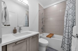 Bright 3-bed townhome overlooking greenbelt at Rocklin by Woodridge homes. Lovingly cared for by original owners with 9’ ceilings on every floor. Main floor offers large living & dining areas, chef’s kitchen & powder room. Upper floor features 3 bedrooms, 10’8” vaulted ceilings in primary bedroom overlooking private yard, spa-like ensuite with dual vanities, & full size laundry closet w/ additional shelves. 2-car XL tandem garage with lots of storage options. Fenced in 360sqft backyard overlooking greenbelt with built-in gas bib for summer BBQs! Located on the quietest row within the complex with no-through road but easy access to Rocklin St. Walk to daycare, Victoria Park. Amazing family neighborhood w/ upcoming comm centre, pool, library & schools.