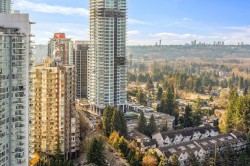 Beautifully updated 2 BED & DEN at the Alina in Coquitlam, offering an ideal location and stunning VIEWS. Professionally upgraded by A2H Design, it’s the ONLY suite with premium upgrades incl. designer lighting. Floor-to-ceiling windows frame unobstructed VIEWS of City and Mountains. The kitchen features mid-century inspired cabinetry, SS appliances incl. gas range. Enjoy a covered 220 SF wrap-around deck, split BED layout for privacy, and a DEN that can serve as a 3rd BED or office. The ensuite showcases a walk-in glass shower and modern finishes. Includes 2 Parking, Storage, access to a 6-level parkade, bike storage, EV charging, pool & hot tub. Steps to SkyTrain, shops, dining, parks and trails. BONUS: Furniture can be included with sale. Shown by appointment.