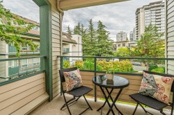 Just check out this gem! Located an easy block away from Coquitlam Centre yet tucked away at the back of the complex in a quiet neighbourhood setting. This 2 bedroom corner unit has large windows that bring light into every part of the home. Beautifully and meticulously updated with great detail, from the new spacious kitchen including a coffee station nook, rich laminate flooring and freshly painted throughout, and an updated bathroom. There is a cozy gas fireplace in the living room with doors out to a covered deck and access to the 2nd bedroom. Step out your door and you have everything from shopping, restaurants, Skytrain, West Coast Express, Lafarge Lake, parks & schools. A great location for a great fresh start! Strata allows 1 cat, sorry no dogs.
