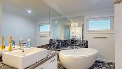 Welcome to your dream home! This centrally located residence offers the perfect blend of timeless elegance, modern upgrades, and incredible outdoor living on a rare .317-acre oasis. Fully enclosed with new aluminum fencing and an electric gate, the property boasts beautifully landscaped grounds complete with new raised garden beds, multiple gazebos, and a private hot tub nestled beneath its own gazebo with aluminum privacy panels—your own serene sanctuary. Step inside the freshly painted entry-level. Perfect as an in-law suite or guest retreat, featuring a spacious rec room with a stone feature wall, electric fireplace, wet bar w/ granite countertops, wine cooler, & beverage fridge. A 3-piece bathroom with walk-in shower and private bedroom complete this level. Upstairs, the heart of the home unfolds. A bright, open living space, cozy gas fireplace, walls of windows w/ sliding doors that open to the newly covered wrap-around deck w/ gas BBQ hook-up. A chef-inspired kitchen, featuring granite countertops, large breakfast bar, & high-end KitchenAid appliances. This level also includes a main bath with a soaker tub, two additional bedrooms, and a gorgeous primary suite with walk-in closet and ensuite. Recent upgrades include: roof, windows, fencing, gazebos, hot water tank, interior paint,& light fixtures. This is more than just a home, it's a lifestyle. It has unique charm, thoughtful updates, and room to grow. This stunning Spanish-style gem is ready to welcome your family.