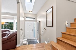 Come home to your peaceful oasis in a quiet cul-de-sac, once you are here you never want to leave. Perfectly situated on a private greenbelt with a sunny south-facing backyard. This beautifully renovated 4 level split home features solid hardwood floors, a newer kitchen with quartz countertops, high-end appliances, Atlas custom cabinetry, & a convenient butler bar. Enjoy a massive, covered sundeck and patio with a 50-year guarantee—ideal for BBQs and entertaining. Extended side yard offers space for a pool or? Renovated main bath includes dual sinks, skylight, and custom storage cabinets. Den off the entry, custom windows with built-in screens, LED décor switches and dimmers. Unfinished bsmt is roughed in for bath & f/p. Two mature apple trees complete this move in ready oasis. Act Now!