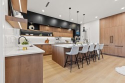 Most impressive luxury new build in North Delta. This brand-new home offers 9 bedrooms, 9 bathrooms, and 4864 square feet on a 6330-square-foot lot with a 2-bedroom legal suite, 1-bedroom GARDEN SUITE, along with another 2 bedroom and full bathroom, in the basement provides excellent $4800 potential rental income. This stunning, modern residence features high-end appliances, a spice kitchen, air conditioning, and radiant heating, with a huge 218-square-foot covered deck on the top floor.