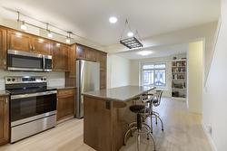 BEAUTIFULLY UPDATED AND IMMACULATE 2-bed, 2.5-bath Townhome at The Gate in Black Mountain —where class, comfort, affordability come together. Tandem double Garage plus driveway allows for 3 Vehicle parking! Covered porch and deck for morning coffee and barbecuing. Privately situated in the quiet middle area a few steps from an expansive landscaped area for your kids and relaxing! Tastefully updated throughout and move-in ready, this three-level home offers a traditional, functional layout with an open-concept main floor perfect for relaxing or entertaining. Updated Laminate through main living areas, and plush carpets in bedrooms are only 2 years old. Warm white paint gives a modern classy feel. Large kitchen features 2 year old stainless steel appliances, subway tile backsplash, and island with Granite counters. Eating area off Kitchen. Great flow seamlessly to the dining area and direct outdoor patio access for your enjoyment. Main floor 2 piece bathroom with pedastle sink. Upstairs, two generous bedrooms each boast a private full ensuite (3 piece and a 4 piece) an ideal setup for privacy. Tons of storage options in the tandem garage. Live moments from trails, Black Mountain Golf & Country Club, and just 30 minutes to Big White. Shopping, restaurants, and everyday amenities are minutes away. Professionally managed, low strata fees and ongoing maintenance—an excellent choice for first-time buyers, investors, or anyone seeking a low-maintenance lifestyle.