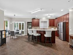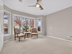 Soaring ceilings, bright open-concept bungalow living and a prime Lower Mission location set the tone for this standout Somerville Corner rancher. This spacious 2 bedroom, 2.5 bath home delivers the kind of easy, single-level lifestyle buyers hunt for but rarely find. The generous primary suite features a true six piece ensuite with jetted tub, while the second full bath sits conveniently beside the guest bedroom, which includes custom wall storage. The kitchen is thoughtfully equipped with a center island, gas rangetop, built-in oven, microwave and wine fridge, and skylights in select areas usher natural light throughout the home. Step outside to a fully fenced backyard offering excellent privacy and a patio ready for relaxing or entertaining. The hot tub is included, although it will need some attention. The oversized triple garage is a major highlight with extensive built-in cabinetry, epoxy flooring and secure space for three vehicles indoors plus room for two more in the driveway. Ideal for storage, hobbies or a workshop setup. Somerville Corner is a quiet, highly sought after Lower Mission enclave within walking distance to Rotary Beach, Mission Creek Greenway, local shops, restaurants and transit. Residents also enjoy access to secure RV parking. A fantastic opportunity to own a well designed rancher in one of Kelowna’s most convenient and livable neighborhoods.