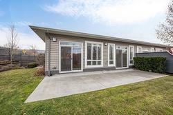 Welcome to the Brighton community! This beautifully maintained two-bedroom rancher with den is perfectly suited to families or those looking for a quality one level living home that offers comfort, convenience, and an unbeatable location. Situated just steps from the Greenway, H2O, the Public Library, and nearby parks, it also sits within proximity to excellent schools and has a wide range of recreation options. Inside, the open floor plan features a bright, spacious kitchen with modern white cabinets, a gas range, and a generous island that flows naturally into the dining area and sunlit living room. A cozy gas fireplace anchors the space, while a large sliding door opens to the fully fenced backyard backing onto peaceful Thompson Creek. With a gas BBQ line, room for entertaining, and a lawn for kids and pets, it’s an ideal living space. The den off the kitchen/dining room works perfectly as a home office or optional third bedroom. The primary suite offers large windows, a walk-through closet, and a luxurious 5-piece ensuite. A split floor plan places the second bedroom and bath at the front of the home—great for older children or guests. A double garage, two-car driveway, and a pet-friendly complex complete this family-friendly package.
