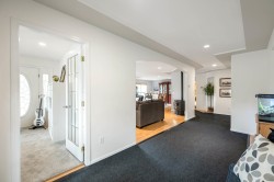 Stunning 3-bedroom, 2-full bathroom open concept rancher in Murray’s Corner! This spacious home boasts a welcoming wrap-around deck, front office/den w/ separate entry, bright & open living area w/ bay window, gas fireplace & large adjacent dining area. Kitchen w/ quartz counters, stainless appliances, generous counter space & cabinetry, pantry, & eating area. Sliding door access to spacious covered deck, stamped concrete patio, gazebo, sheds, & beautifully landscaped & fenced yard. Three bedrooms including primary bedroom w/ 4 pc ensuite & walk-in closet. 4 pc main bathroom, laundry room, & storage/utility room w/ crawlspace access for add'l storage. New carpets & hot-water tank. Central A/C! Double car garage & small RV parking. Short walk to parks, golf, cafés, schools, & shopping.