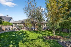 Discover luxurious, one-level living with room for your toys! This 2288 SF executive ranch-style home sits on a private, beautifully landscaped 1/4 Acre south-facing lot in one of South Aldergrove's most desirable neighbourhoods. Meticulously maintained & freshly painted inside and out, this home features a full orchard w/cherry peach plum kiwi & apples-your own backyard harvest! Enjoy a spacious layout with engineered hardwood floors, oversized bedrooms, granite kitchen with custom built-ins, massive walk-in pantry, and large covered patio for year-round entertaining. Quality upgrades including HW on demand/boiler (2021), EV charger, radiant infloor heating, and more. Triple garage with 16 x 13, full-height storage above and access stairs. Elegant, quiet, effortless living at its best.
