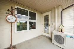 Welcome to Chelsea Green in the heart of Walnut Grove! This bright, top-floor, corner unit is designed for vibrant 55+ living. With over 1,200 sqft of thoughtfully designed space, enjoy 2 spacious bedrooms and 2 full baths with added A/C for your ultimate comfort. The immense primary includes a heated-floor ensuite and patio access. Relax by the cozy gas fireplace or unwind on your private patio with serene mountain views. The kitchen features a pantry and an open bay window to the living room—great for entertaining. Strata includes A/C, on-demand hot water, and gas heat. Enjoy a warm, welcoming community with RV & visitor parking and resort-style amenities like aqua-fit, woodworking, and games nights. Steps to shops, parks & transit – Home is where your Storey begins!