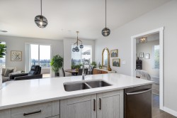 Fabulous spacious home with “endless” VIEWS beyond the city lights incl. Mount Baker, The Cascades and the peak of Orcas Island. Corner unit with a superb floor plan taking in an abundance of natural light from the oversized windows. A well designed kitchen with quartz counters and quality stainless steel appliances. Your living room has a built-in wall unit and the dining room has space to host your dinner parties. The primary bedroom boasts a walk-in closet (with organizers) and lovely en-suite. Two other bedrooms plus a “bonus” flex area. Air conditioning throughout. The two separate sundecks are HUGE (726 sq/ft), one covered one open providing year round enjoyment. Great in suite and deck storage. An additional storage locker and 2 side by side parking stalls. A truly one of a kind!