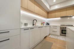 Legacy On Park Avenue designed & built by a 47-year German builder/developer as his legacy. Luxury six-story building, stunning architecture, aluminum, tile, glass exterior, fabulous lobby, concierge, 6000 sq. ft. of amenities: party, board, meeting rooms & gym. Underground EV, heating/cooling system. Spacious 1594 sq. ft. 3 bedrooms. 3rd bedroom has murphy bed. Sub-penthouse north/east corner plan. 9 to 14” ceilings, floor to ceiling windows, engineered white oak flooring, Caesarstone countertops in kitchen & baths, top of the line cabinetry, built-ins, Fisher & Paykel appliances, electric fireplace. 40 ft. long balcony with mountain & park views, fire table & barbeque hook ups. An amazing rancher in the sky. No expense spared & so convenient: walk to shops, parks, sky-train.