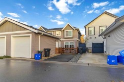 3-level 1/2 duplex in Willoughby Heights with modern finishes and a functional layout. Main floor offers an open-concept great room, dining area, and designer kitchen with stainless steel appliances, plus a den and powder room. Upstairs features a spacious primary bedroom with ensuite, two additional bedrooms, full bath, and laundry. Basement includes a large rec room, bedroom, and storage. Back lane access with detached garage, fenced yard, and 2-5-10 home warranty. Close to schools,