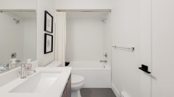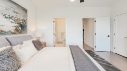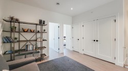 Welcome to this stunning open concept Rowhome with 10ft ceiling on main. This Luxury 2,560 sq.ft. is a former show home designed by Sarah Gallop Design. Offering 4-5 bedroom with premium upgrades, designer furniture, and accessories which the owner is including in the purchase, Gourmet kitchen featuring integrated Fisher & Paykel appliances, a gas range, dual wine coolers, built-in buffet, and a custom credenza. Spacious deck with undisturbed views & BBQ hookup, perfect for entertaining. The Master bedroom with 5-piece spa-inspired ensuite, chandelier, walk-in closets. Lower Level: Ideal for guests or extended family, featuring a bedroom, full bath, wet bar, fridge, and wine rack. Double side by side garage with epoxy finishes, Security & Vac Sys, close to shopping, schools and Hwy 1.