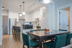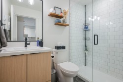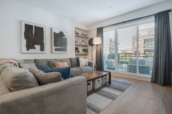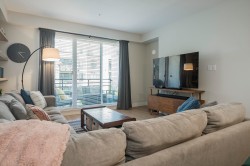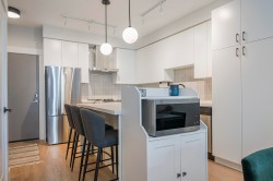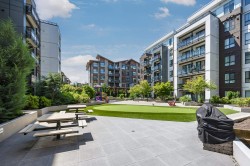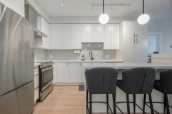 PRIME Willoughby living at Hudson & Singer! This rare end-unit offers over 1,000 sq. ft. of bright, open living space, 2 large bedrooms, and a modern kitchen with quartz counters, stainless appliances, and a generous island—perfect for entertaining. Enjoy a sun-filled layout with windows on two sides and a private balcony with tranquil courtyard views. Walk to everything—Willoughby Town Centre, groceries, coffee shops, parks, schools, and transit—with fast access to Highway 1 for easy commuting. Comes with 2 side-by-side parking stalls and a storage locker. Move-in ready, spacious, and in an unbeatable location—this one checks all the boxes!