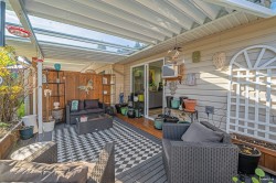 "THE BOARDWALK" 55+ COMMUNITY Tucked away is this 20 unit complex of RANCHER style townhomes perfect for the downsizer seeking 1 level living with a small YARD, attached single GARAGE, in a private, friendly, neighbourly enclave. This home offers 2bdrms (2nd bedroom has 3 closets & SKYLIGHT) two recently updated Bathrooms & long garage with workshop. The interior has been elegantly UPDATED with CUSTOM CABINETRY in the Kitchen & both Bathrooms as well as New Countertops & Lighting. Living room has a WEST facing BAY WINDOW & GAS F/P and a adjoining Dining room w/"Sky Tunnel". Kitchen has an eating bar, lots of Cabinets/Counters/Pantry w/pull out shelves & 2 "Lazy Susan's". Family room w/sliders to large Covered Private Patio and Yard. Luxury Vinyl Flooring throughout .