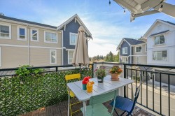 Welcome to Archer Green! This beautiful townhome is a spacious end unit surrounded by nature, offering three bedrooms, 2.5 bathrooms and a flex room. Enjoy abundant natural light throughout the unit and valley views from the south-facing deck. The welcoming heritage farm house entrance is a covered patio elevated from the road for added privacy.The home features an over-height two-car garage, which includes a previously installed electric car charger. Archer Green is Polygon's first clubhouse community, located on the hillside in the friendly Silverdale neighbourhood, offering the convenience of city living with nearby park spaces at your doorstep. Pet Friendly. It is a well-managed complex including a clubhouse with exercise room, playground, outdoor pool & a hot tub & multipurpose room.