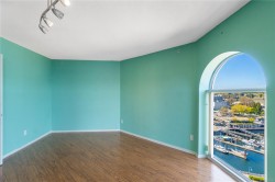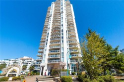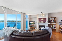 BACK ON MARKET. Welcome to Cameron Island and The Beacon. Situated on the 17th floor, this "05" unit showcases the most outstanding views from sunrise to sunset. This 2 bedroom plus den, 2 bath suite features an open floor plan, gas fireplace, separate storage locker and a private balcony. Unlike many other units, 1705 maintains tremendous value with 2 assigned parking stalls, and direct ocean views. The master showcases unobstructed views and a 4 piece en-suite bath. The Beacon also boasts a fitness room, swimming pool and hot tub, party and gathering spaces, and is wheelchair accessible. Recent upgrades include air conditioning to all common hallways, fitness areas and gathering rooms, plus an EV charging system to the parkade.(inquire for details). Located next to a marina, Gabriola Island ferry terminal, and easily accesses transportation, downtown entertainment and shopping districts.