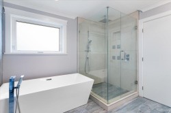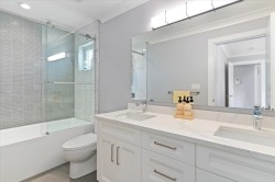 Welcome home to this 4500 sf spectacular custom built home in New West's West End. An extraordinary opportunity to own one of the most elegant single-family homes available. This exquisite residence is designed with superior quality finishes including high-end quartz counters + cabinetry, security system, radiant floor heating, A/C and more! Open concept indoor/outdoor layout with 7 beds + 8 baths, complete with over height ceilings + real hardwood floors, creating a grand atmosphere that provides ample space for entertaining. Legal two bedroom suite on lower level and ADU in garage. Perfect for those seeking a family neighbourhood that offers a lifestyle of comfort + convenience, all located near excellent schools, parks, shopping + amenities.