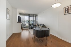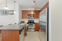 Opportunity knocks at “The Point”, located in the vibrant Downtown New West! Welcome to this spacious 1 bed + den unit, featuring an ideal open concept layout, perfect for first-time buyers or savvy investors. Features include an open kitchen with granite counters, stainless steel appliances, a breakfast bar, and modern cabinetry. Relax in the deep soaker tub, laminate floors, in-suite laundry, one parking spot, and ample street parking. Building amenities include an indoor pool, hot tub, gym, media room, and lounge area. All this just steps from the SkyTrain, shops, restaurants, Pier Park, and the Quay. A smart start in a prime location!