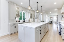 Brand New Luxury Home in Queensborough! This stunning 3024 SqFt. residence showcases modern design, quality craftsmanship, and exceptional functionality. With 6 bedrooms and a den plus 6 bathrooms mostly with ensuites it offers flexible living for families of all sizes. The layout includes a legal suite that can be configured as a 1 or 2 bedroom with lock-off option – ideal as a mortgage helper, in-law suite or private guest space. Enjoy radiant flooring heating, air conditioning, LED lighting and security. A double tandem garage with back lane access adds convenience. Located in the vibrant Queensborough community & minutes to schools, parks, Costco and the Skytrain Station. Backed by a 2-5-10 home warranty and move-in ready.