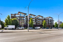 Welcome to Dominion by Ledingham McAllister in the heart of New Westminster. This bright and spacious 1 bed plus large den home offers flexible living, with a den big enough for a second bedroom or office. Enjoy a modern kitchen with quartz counters, stainless steel appliances, soft-close cabinetry, and a floating breakfast bar. The open layout flows to a covered patio perfect for relaxing. The primary bedroom features a walk-in closet, cheater ensuite, and views of the Royal Gardens. Includes parking, storage, and access to a secure bike room. Steps to SkyTrain, Douglas College, shops, and cafes. A beautiful home in an unbeatable location!
