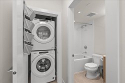 Immaculate 2 bed, 2 full bath ~950 sqft home at THE COLUMBIA—one of the best layouts in the Brewery District! Bright open plan w/ no wasted space & large windows for natural light. Modern kitchen w/ GAS range, S/S appliances, quartz counters & island bar. Defined dining & living areas lead to a quiet court-facing 112 sqft balcony—perfect for relaxing or entertaining. Spacious primary bdrm w/ walk-in closet & ensuite w/ dbl sinks + a good-sized 2nd bdrm ideal for guests, kids, or office. Quality 5 yr old bldg w/ balance of 2-5-10 warranty. 10,000+ sqft of resort-style amenities: gym, squash court, yoga rm, sauna/steam, lounges, comm. garden + wash stations! 1 parking & locker. PRIME location steps to SkyTrain, RC hospital, grocery, shops & restaurants + easy highway access. *MOVE IN READY!*