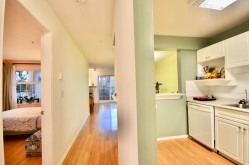 Welcome to the Benton! One of the rarest unit in the whole complex! OVER SIZED 782 SF 1-BEDROOM condo with a Large 252 SF private wrap around patio located on a Bright, secure, and convenient garden level. Bring all your house sized furniture. You can fit a king-sized bed, side tables and a dresser in the master bedroom. Enjoy a natural gas fireplace in the living room and a large working kitchen and dining area. The suite comes complete with insuite laundry , laminate throughout the main living area, new paint, cheater ensuite, plenty of insuite storage, a separate locker, one parking stall and security system. This is an amazing opportunity to grab!