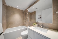 Welcome to CF at Richmond Centre - Tower C, the newest landmark of urban sophistication in the heart of downtown Richmond. This spacious 2-bedroom + den, 2-bathroom unit offers the perfect blend of modern comfort, thoughtful design, and vibrant city living. Step inside and be greet by an open-concept layout featuring floor-ceiling windows, a contemporary chef-inspired kitchen complete with premium Gaggenau appliances, quartz countertops, and sleep cabinetry. The primary offers a private ensuite and generous closet space, while the den is perform for a home office. Enjoy stunning YVR and mountain views from your private balcony, or take advantage of the exceptional building amenities. Including 1 parking stall + 1 storage locker.