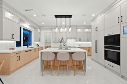 Luxury living in Seafair, Richmond! This brand-new executive home offers the perfect layout with high-end Miele appliances, a full spice kitchen, elegant tile and hardwood flooring, and year-round comfort with A/C and radiant floor heating. The open-concept layout is perfect for entertaining, with a main-floor in-law suite/mortgage helper and a large office that can double as a bedroom. Upstairs offers large four spacious ensuites, including a luxurious primary with walk-in closet. Enjoy a 3-car garage, 3 extra driveway parking, and a prime location just minutes from Safeway, restaurants, the dyke, and top schools. A must-see opportunity!