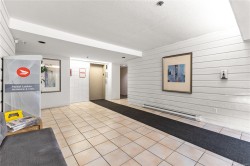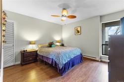 OPEN HOUSE SAT DEC 20, 2025. NEW PRICE! You will love this well cared for bright west facing 1 bed 1 bath updated condo! Updated features include newer style kitchen cabinets, laminate floors & newer carpet in living room. Great outlook over beautiful Rutledge Park out to the mountains beyond. You will also enjoy incredible year around views from the balcony. Pet friendly 1 dog under 25 lbs & 1 cat or 2 cats. Centrally located between Hillside Mall and Mayfair Mall, Thrifty Foods, Save on Foods, 1 block from direct bus route. Proactive strata in a well managed building. Come & see this great condo and make your wise choice today to live in this quiet convenient location.