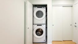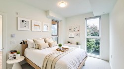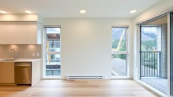 Welcome to The Aegean — a contemporary building in the heart of Downtown Squamish. This NEW bright CORNER 2-bedroom, 2-bath residence features an open-concept living area with floor-to-ceiling windows framing sweeping mountain views. The kitchen boasts quartz counters and full-size stainless steel appliances. Enjoy a private balcony, separated bedrooms for added privacy, and an ensuite bathroom with a frameless glass shower. The spacious den with a barn-door enclosure is perfect for the home office or an extra bedroom. Residents benefit from an open amenity room, secure underground parking and bike storage. Steps to shops, cafes, transit, and trails - perfect for active, connected mountain living. Some images virtually staged.