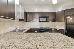 D'Cor - In the heart of the city centre. Across from the new library, city hall and few minutes from skytrain, Rec. Ctr, SFU and shopping, T&T market. Spacious 1 bed 1 bath ground floor unit with huge living room & covered patio, very functional plan, granite counters and enough storage, new laminate floor and fresh paint, Concrete between floors, 9ft ceilings. The building has gym, club house, pool, tennis table. Best price/ sft for first time buyer to move in or property to invest. Well maintained strata & no major work anticipated soon. This location is unbeatable. Excellent walk score of 89/100 and transit score of 90/100. Making car unnecessary.