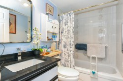 White Rock Village: spacious ground floor corner unit with great natural light. Many updates including ceramic kitchen flooring & back splash, newer dishwasher & LG fridge, sink & tap.Gas cooktop for the chef in your family! Living room features new thermo blinds, wood flooring & cozy gas fireplace, with access to spacious patio with garden. Updated bathrooms and recently painted interior. The building has been extensively retrofitted including rain screening with hardy plank siding, windows, doors, balconies & roof. Great amenities include recreational room, sauna, huge deck on 3rd floor, exercise room and library & beautifully landscaped courtyard. No smoking complex and no pets, age 55 plus. Central to shopping in Ocean Park AND White Rock with transit & convenience stores nearby.