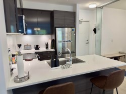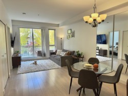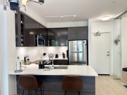 Experience spacious living in the heart of Surrey at The Verve! This bright 1-Bed + Large Den (719sqft) features 9' ceilings, a modern kitchen with quartz counters, full-size stainless steel appliances, large island with breakfast bar, and under-cabinet lighting. The oversized bedroom includes his & her closets and dual-access bathroom. Enjoy in-suite laundry and a west-facing balcony perfect for relaxing or BBQs. Includes 1 underground parking & storage locker. Building amenities: gym, yoga, billiards lounge, guest suite, and secure entry. Steps to King George SkyTrain, SFU, Central City Mall, parks, hospitals & restaurants—must see! Open House: Sat. & Sun (Nov.15&16) 2-4pm.
