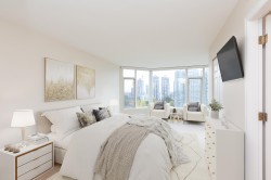 Welcome to Odyssey Towers! This naturally bright, south-facing 2-bedroom, 2-bathroom 1338 sq ft corner unit is the one you’ve been waiting for. Featuring two spacious bedrooms & fully updated bathrooms with brand new modern vanities, quartz countertops, & toilets. Sunlight fills every room, highlighting stunning panoramic views from every window. Open-plan kitchen, dining & living area offers the perfect space for family gatherings & entertaining with access to the south facing balcony. Nestled on a quiet street yet close to all amenities, it also boasts new flooring, freshly painted walls & baseboards throughout. Enjoy premium building amenities including an indoor pool, gym, sauna, games room, & social lounge. Just minutes from shops & SkyTrain, this is modern urban living at its finest!