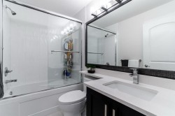 Welcome to Panorama West Coast Living! This bright and spacious corner-unit townhome offers over 1,625 sq. ft. and is move-in ready. The main floor features a chef-inspired kitchen, a large island, pantry, powder room, and an open living/dining area. Upstairs are three generous bedrooms, including a primary suite with ensuite, plus an additional three-piece bathroom. The lower level includes a fourth bedroom with its own ensuite—perfect for guests or a home office. Enjoy two private upper-level decks. Low strata fees and a central location.
