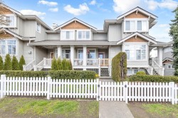 Duplex Style Townhouse! Discover the charm of this bright and spacious 2-bed, 2-bath townhome with 2 parkings located in family-friendly atmosphere, lush green spaces & convenient amenities. Offers fenced-in yard, contemporary laminate flooring under bright windows and high ceilings. Kitchen boasts stainless steel appliances and crisp quartz counters with a convenient breakfast bar. Adjacent laundry and naturally lit bedrooms, including a primacy suite with an ensuite and walk-in closet, provide comfort and convenience. Steps away from school, park, Starbucks, Fresh St. Market, McDonalds, Shoppers Drug, 152 St, Hwy 10 & King George. Walking distance to new French Immersion school - Snokomish Elementary. Call now to book appointment. Open House Saturday Dec 20 - 12:00 PM - 2:00 PM