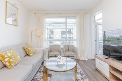 Welcome to Kings Landing by Dawson & Sawyer - This pristine 1 bed, 1 bath plus den unit boasts of contemporary open living space. Bright and open concept featuring 9' ceilings, dark shaker cabinetry with designer stainless steel hardware, quartz countertops, durable laminate flooring & stainless steel appliances. Unit includes 1 underground parking, amenities room & bike room. Prime location - conveniently located near Skytrain, SFU Surrey, future UBC campus, shopping, recreation, restaurants, and much more! Rentals and Pets allowed (1 cat or dog), Perfect for investment or first time buyers.