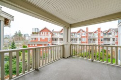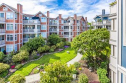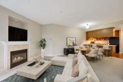 Welcome to Ocean Bay Villas—ideally located in uptown South Surrey/White Rock area. This bright and well-designed 2-bedroom, 2-bathroom condo offers an open-concept layout with a cozy gas fireplace & a spacious covered balcony overlooking the quiet courtyard. The primary bedroom features a walk-in closet & private ensuite, while the second bedroom is conveniently located next to a full bath with a stand-up shower. Strata fees include gas and hot water, and the unit comes with one parking stall and a storage locker. Amenities: Clubhouse, fitness centre, guest suite, workshop &bike room, Pet-friendly with no size restrictions. School catchment: Jessie Lee Elementary & Earl Marriott Secondary All near by amenities steps away.