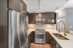 2 PARKING STALLS + STORAGE. Stunning TOP FLOOR CORNER/PENTHOUSE residence in sought-after Sullivan Station showcases 2 BEDS, 2 BATHS plus a versatile flex room. OPEN LAYOUT with 1,063 SqFt of stylish living space, this pristine home feels like new. The chef-inspired kitchen features stainless steel appliances, quartz counters, shaker cabinets with soft-close, and under-cabinet lighting! BRAND NEW washer/dryer. Extra windows, soaring 9 ft ceilings and abundant natural light elevate the airy design. The private primary suite overlooks tranquil green space, complete with a spa-like ensuite offering double sinks and frameless glass shower. The second bedroom is ideally located next to the second full bath. Enjoy resort-style amenities including clubhouse, fitness centre, gardens, and more