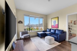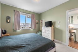 Welcome to The Ridge at Bose Farms! This charming 2 bed + den, 1 bath home offers stunning mountain and valley views. Features include an open floorplan, upgraded s/s appliances, quartz countertops, oversized island, in-suite laundry, and a spa-inspired ensuite with double sinks, deep soaking tub, and heated floors. 2 PARKING AND A HUGE LOCKER! Enjoy the peaceful, private view from your large covered balcony. Incredible amenities: garden plots, guest suites, playground, gym, yoga studio, craft room, theatre, library, and a heritage barn for events. Surrounded by trails at Bose Heritage Forest, near Cloverdale, Sullivan Heights, and Northview Golf Course. Now is your chance to experience country living with modern luxury! THIS ONE WILL NOT LAST LONG!!!