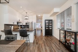 Welcome to Two Blue, a fantastic family-friendly townhouse community in Clayton Heights. This beautifully maintained end-unit offers 2 bedrooms, 2 bathrooms, and over 1,300 sq. ft. of updated living space. Recent upgrades incl. fresh paint, new main-level flooring, updated blinds, modern light fixtures, refaced kitchen cabinets, & upgraded hardware throughout most of the home—showcasing clear pride of ownership. The main floor opens onto a large, unique wraparound deck w gas hookup, overlooking a fully fenced backyard w low-maintenance artificial turf. Upstairs, you’ll find two generously sized bedrooms w large closets. The primary suite features an ensuite bathroom w double sinks & a walk-in shower.A double tandem garage provides ample parking and additional storage space.