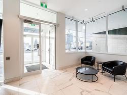 Modern Living at The Grand on King George. Stylish 1-bedroom + den, 1-bathroom condo on the 8th floor with 567 sqft of open living space and a 93 sqft balcony. Features include custom millwork doors, illuminated closet organizers, CENTRAL HEATING & COOLING, Wi-Fi-enabled Samsung appliances, GAS cooktops (included in strata fees), and efficient kitchen cabinet organizers. Enjoy 23,000 sqft of premium amenities: a private off-leash skypark, state-of-the-art fitness centre, VR room, outdoor BBQ and park area, playground, and 24/7 concierge. Conveniently located above five floors of commercial space with coffee shops, medical offices, and daycare at your doorstep. Less than 5 minutes’ walking distance from Gateway Skytrain Station, schools, and easy access to Highway 1.