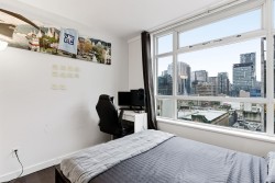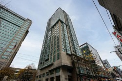 South East corner residence at Conference Plaza with sweeping city VIEWS from every room. This bright 1-bedroom + solarium offers a highly efficient layout, real hardwood floors, and a recently updated kitchen with quartz counters and stainless steel appliances. The bedroom is well-proportioned, the solarium makes an ideal home office, and the large windows deliver steady natural light throughout the day. The bathroom features a quartz vanity and modern fixtures. In-suite laundry, secure parking, and a storage locker included. Residents enjoy a full suite of amenities: 24-hour concierge, indoor lap pool, hot tub, sauna/steam, fitness centre, and guest suite. Steps to SkyTrain, the Financial District, SFU/BCIT campuses, Gastown, Pacific Centre, and Coal Harbour. 1 Parking 1 Locker