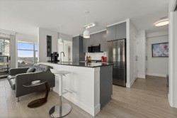 NOVA by BOSA in heart of Yaletown. This stunning corner 2 Bed + 2 Bath + Den + Flex offers over 1,050 SF of luxurious urban living. An entertainer’s dream with an open kitchen, 10’ island, gas cooktop & stainless appliances. Bright, spacious living & dining fit house-size furniture and open to a covered balcony with sunny water views for year-round use. Bedrooms are separated for privacy, with a spa-like ensuite, inspiring den & large flex/pantry. Enjoy great amenities—gym, yoga space, hot tub, steam room, lounge, guest suite & courtyard. Prime Yaletown location close to Robson, Granville, Costco, T&T, Seawall, Stadium & Arena. Includes 1 parking & 1 locker.