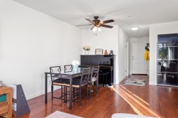 Welcome to this bright & spacious corner unit condo in the Boardwalk! This lovely 2-bed, 2-bath freshly painted home offers the perfect blend of tranquility and modern convenience. Step into the bright open-concept living space featuring hardwood floors, quartz countertops, s/s appliances & laqquer cabinets. A large private deck overlooks a serene courtyard with fountain and is ideal for relaxing or entertaining. The well-maintained rainscreened building offers fantastic amenities, including gym, recreation room, guest suite & work shop. All of this is just steps away from the vibrant River District which has a variety of restaurants, shops and all that the area has to offer. The central location gives you easy access to everything!