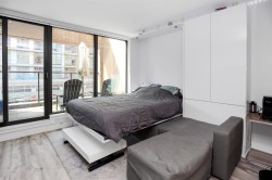 Sophisticated, sunlit studio in Vancouver’s iconic Genesis building—fully furnished with $63K in high-end upgrades. This unit includes a rare 94 sq. ft. private patio, secured parking, Italian Murphy bed, custom California Closets, $3K storage sofa, and modern tile flooring. South-facing layout lives like a 1-bedroom, with a reimagined flex space ideal for office or storage. Includes in-suite washer/dryer. Enjoy resort-style amenities: full gym, pool, sauna, rooftop terrace, concierge, guest suites, and more. Pet- and rental-friendly, just steps to the Seawall, Yaletown, top dining, and shops. Turnkey opportunity for stylish city living or a high-performing investment in one of downtown Vancouver’s most desirable locations.