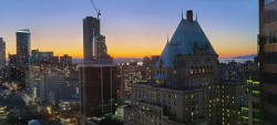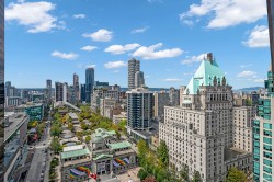 Location! A Premium corner 2 bed 2 bath + den/flex space unit at the Private Residences at Hotel Georgia. This upper level unit offers a dramatic floor-to-ceiling windows w/ a breathtaking architectural views spanning English Bay, downtown skyline, and mountain vistas. Other features includes sun/blackout shades; central AC; Spa-like bathrooms with marble finishes; in the kitchen, Sub-Zero fridge, Miele appliances, Caesarstone counters and wine fridge, patio with gas outlet for BBQ. The building offers 24/7 concierge, Privileged hotel services, valet service, indoor saltwater pool, spa, fitness center, lounges, bike storage and more. Located right in central Downtown, only steps from Skytrain & buses, Robson Square, Vancouver Art Gallery, and many restaurants & shops.